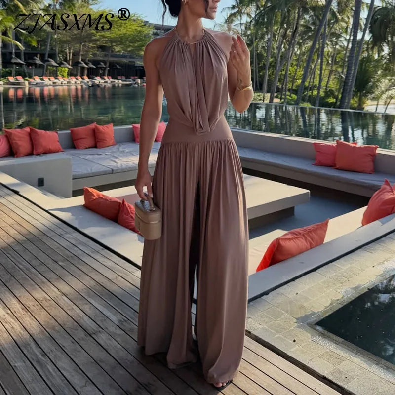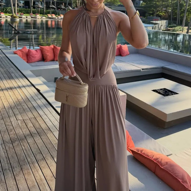 Audrey Satin Halter Backless Maxi Dress